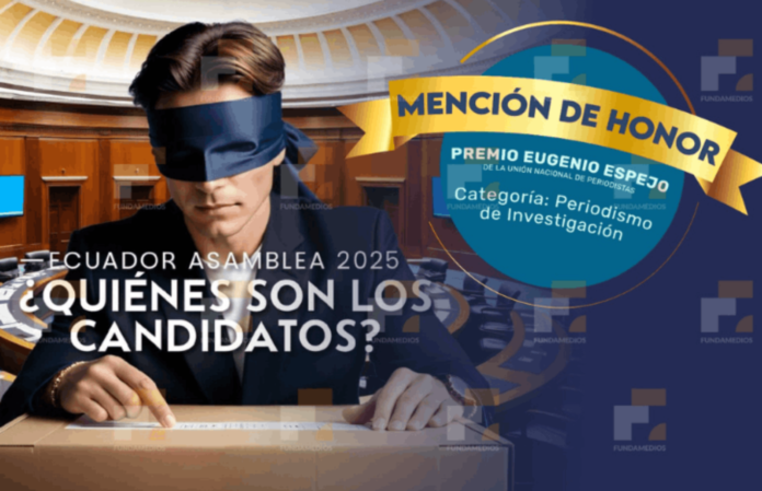 Quito, 29 enero de 2026. — La serie periodística «Ecuador Asamblea 2025: ¿quiénes son los candidatos?», una investigación colaborativa sobre los 2.089 candidatos a la Asamblea Nacional, fue reconocida con una mención de honor en la categoría Investigación, de los premios Eugenio Espejo, otorgado por la Unión Nacional de Periodistas (UNP), edición 2025.